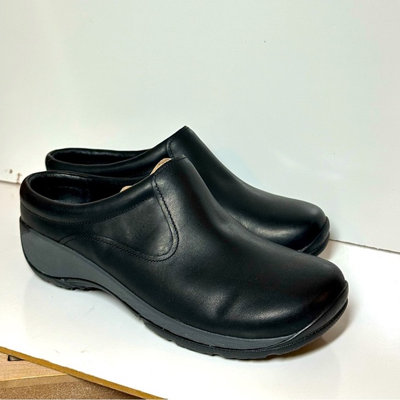 MERRELL Encore Q2 clog women’s size 11W. NEW with box tag. See pictures above. Black leather with gripping sole/non-slip. Great for long term standing or use as a comfortable walking shoe.