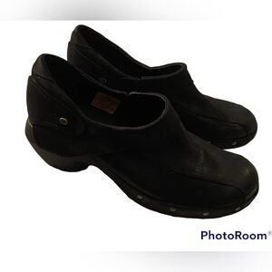 MERRELL J68678 LUXE WRAP STUDDED BLACK LEATHER SLIP ON CLOG’S 9.5