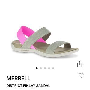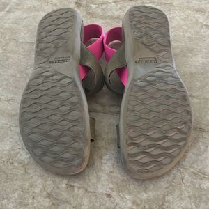 Comfortable pair of Merrill walking sandals. Khaki with a bright pink backstrap. Size 10 in very good condition.