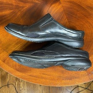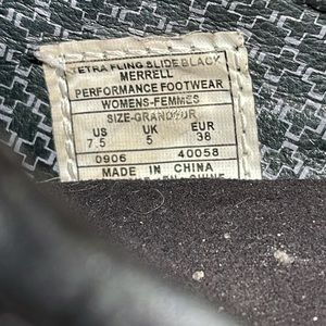 MERRELL MULES BLACK SIZE 7.5 love ❤️ worn but broken in well for more wear. Don’t they shine when polished. They can have a few marks on them but I tried to show all sides in the pictures. Name might be on the tags. These shoes have lots of character.