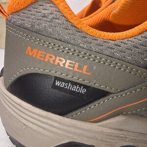 MERRELL TRAIL SHOES QUEST HIKING SNEAKERS YOUTH SIZE 7 VELCRO ORANGE GRAY EUC