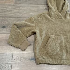 MERRELL Tan Sherpa Cropped Oversized Hoody With Kangaroo Pockets Size Small