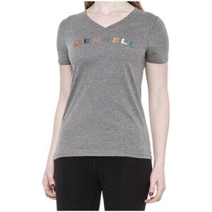 MERRELL Women's Arch Gray Stonewash Short Sleeve V Neck TShirt Size XS New