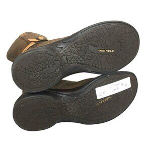MERRELL Womens Brown Leather Knee High Riding Boots 9/40 Waterproof Side Zip