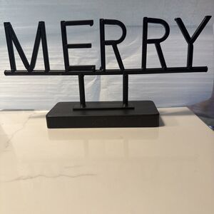MERRY Christmas Decoration Metal Tabletop Decor NWT Mantle Desk Shelf Holidays