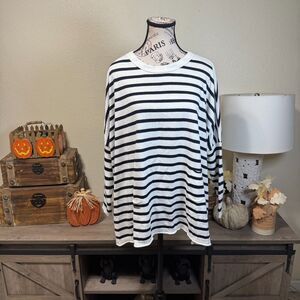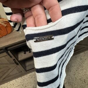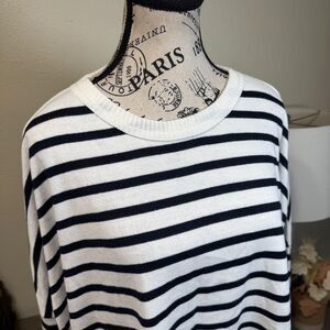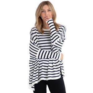 MERSEA Catalina Navy Stripe Crew Neck Travel Sweater OS Nautical Lagenlook Boxy