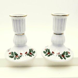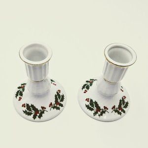 NWOT*Vintage*Christmas Holly Taper Candlestick Holders.