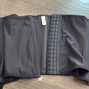 Elegant black corset with secure hook and eye closure and a second layer with zipper. Ideal for a sleek, stylish look.