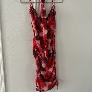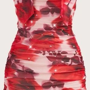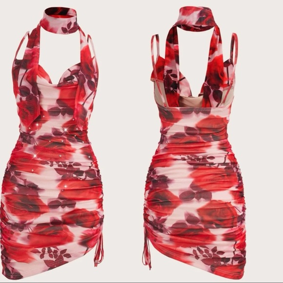 Floral print dress with ruched side