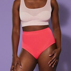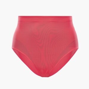 This semi-sheer high-waist brief smooths and tones with an innovative double layer design to hug you in the front and let you breathe in the back. It also features a smart silicone waist gripper to prevent rolling and increase comfort.