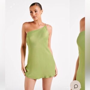 One Shoulder Mini Dress With Pearl Trim - Parakeet Green