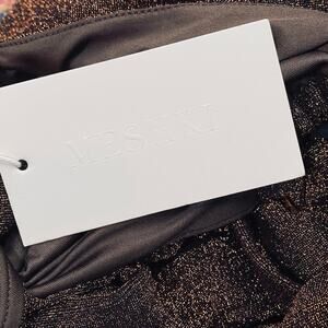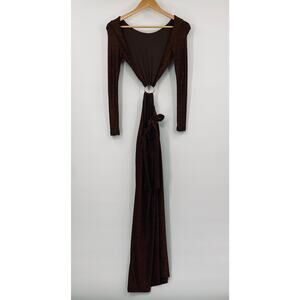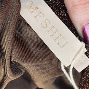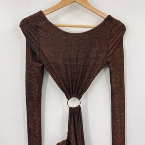 MESHKI Christina Backless Cut out Dress Long Sleeve Brown Gold Metallic NEW XXS