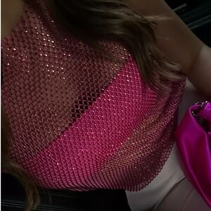 MESHKI Emerson Diamante Mesh Fishnet Tank Top In Fuchsia Pink. Size Small NWT