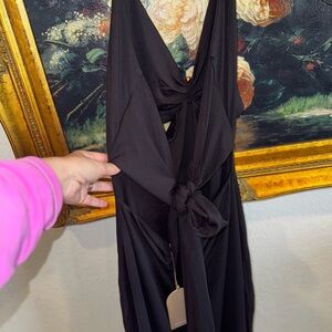 MESHKI NEW Heidi Recycled Nylon Pin Detail Open Back Midi Dress X-Large.