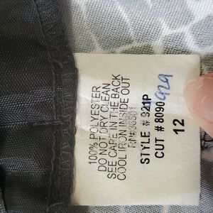 100% polyester. Made in USA. front zipper and button women's slacks. Vintage, great used condition. Size 12, waist flat measurement is 15.5 ". inseam is 28.5 ". Top to bottom length is 38".