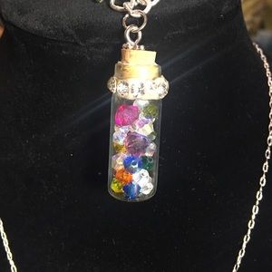 This is a one of kind three piece fashion jewelry Swarovski crystal set it comes with the necklace, earrings, and bracelet!! It has multi color Swarovski crystals with clear also they shine so much more in person believe me the pictures don't show the shine at all!! This set is gorgeous! Come on you know u want to buy this set!!