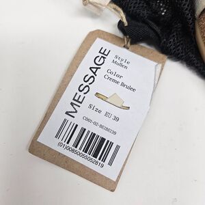 MESSAGE Mullen Classic Slides. Size 39. Creme Brulee. Neutral. Minimalist. Vegan. Lightweight. Sustainable. These are new with defect (2 small light dirt? marks -- see photos 4 and 5). I did not attempt to treat or wash the spots, but these are machine washable shoes.