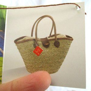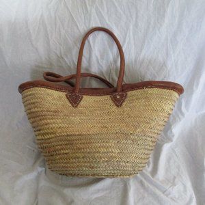 MESSAGE Woven Basket Leather TOTE Bag NATURAL Shopper Market Summer Purse