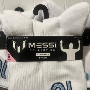 MESSI Collection Mens Cushioned Crew Socks Sz 6-12 Set of 6 White NEW