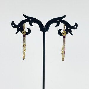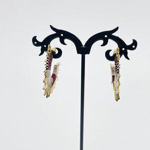Mestiere NY Theodora Hoop Earrings New on Card Burgundy Gold Tone Pierced Boho