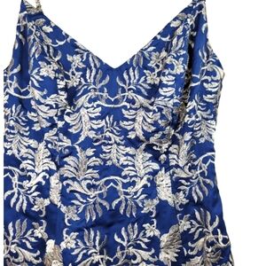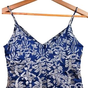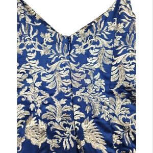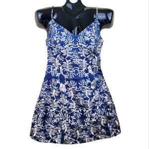 MESTIZA New York Jacquard Floral Cocktail/Prom/Special Occasion Mini Dress, concealed back zipper, V-neck spaghetti straps, lined, polyester, approx measurements: bust 33, waist 25, hips 36, previously owned, excellent like new condition,