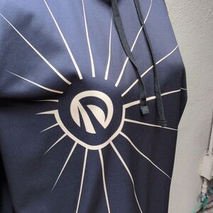 META Threads YEAR ONE rebranding of Facebook Launch Edition Meta Mens unisex black, navy, gold graphic design. Med black Hoodie sweatshirt.