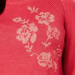 Embroidered with a metallic floral motif, this simple pullover sweater adds subtle shine to your everyday style. Dress it up for a special occasion, or simply add some glitz to your casual looks.