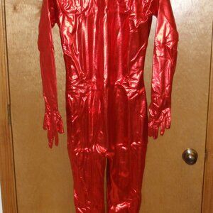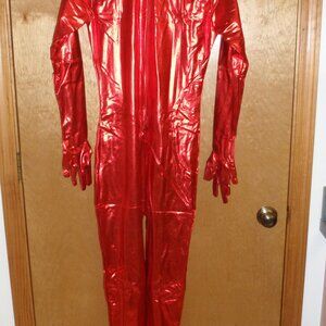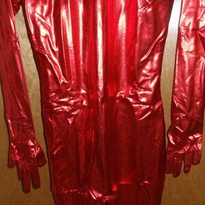 METALLIC RED UNITARD 2ND SKIN HALLOWEEN GIMP DEVIL COSTUME ZENTAI ALTSKIN - NEW!