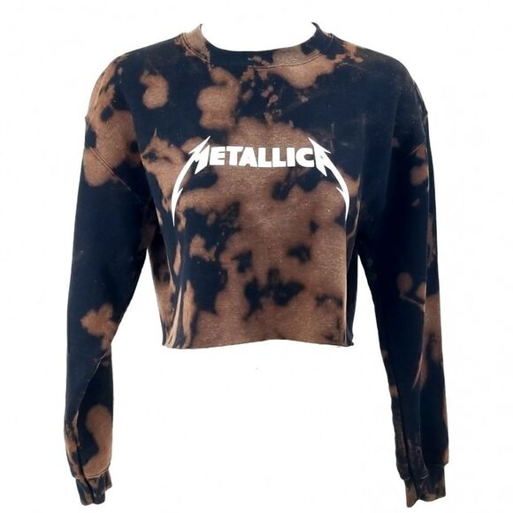 METALLICA Acid Wash, Distressed "Cropped" Crop Top Long Sleeve Crewneck Sweatshirt. Size: Small, Medium, Large and XL