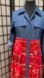 HIGH WAIST, BUTTON UP FRONT, ROLL TAB LONG SLEEVES, MAXI LENGTH, PINK AND FUCHSIA ABSTRACT PRINT SKIRT, BLUE DENIM BODICE! FLOWY A LINE FIT: 95% POLYESTER AND 5% ELASTANE, PRE OWNED IN BEAUTIFUL CONDITION: