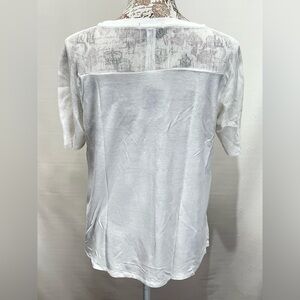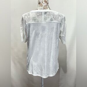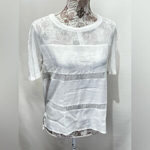 White sheer stripe short sleeve top from METAPHOR, size M.