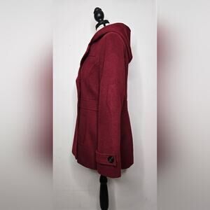 METAPHOR Womens Red Hooded Winter Coat Size M Button Front Fully Lined Pockets M