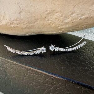 These ear climbers are handcrafted from sterling silver and simulated diamonds. Material: Sterling silver rhodium plated Stones: Simulated diamonds Color: SilverSize of earrings: LongEar climber (Length: 3 cm/ 1.2 inch Width 0.4 cm/0.6 inch) Additional Information: The bottom of the earring requires your ear to be pierced but the top can easily slide on your ear. All our products are handcrafted. Designed by Alex S.