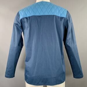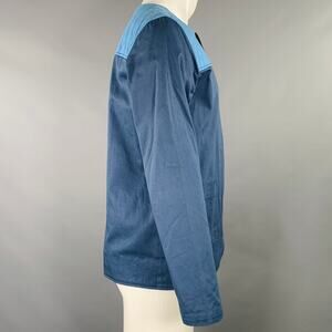 METISEKO Size M Navy Blue Two Toned Organic Cotton Collarless Jacket