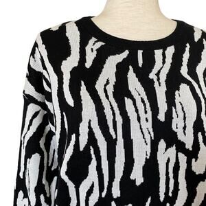 METRIC Zebra Print Cropped Sweater Black White Size Medium
