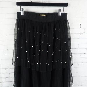 METRO WEAR BLACK LAYERED TIERED MIDI SKIRT WITH PEARL ACCENTS SIZE SMALL