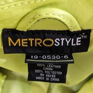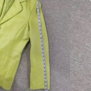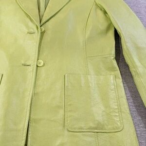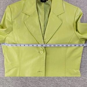 METROSTYLE Leather Jacket Blazer Lime Green Button Front Lined Size 10 Retro