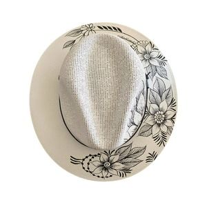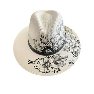 MEXICAN Artisanal Hat Hand Painted Fedora Floral Sombrero Panama Bohemian Large