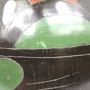 MEXICAN FOLK ART DARK BROWN CLAY POTTERY GINGER POT HAND-PAINTED FLORAL DESIGN