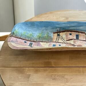 MEXICAN FOLK ART Hand Carved Decorative WOOD DISPLAY BOWL SIGNED PAINTED PUEBLO