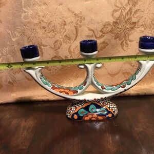 MEXICAN POTTERY GARAY 3 LITE CANDELABRA, CANDLESTICK, FOLK ART