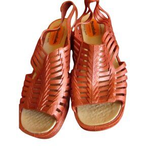 MEXICAN SANDALS Sz 7.5 NEW NIB True Vtg 70s Womens BROWN RUBBER Strappy SANDAK