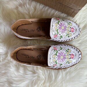 MEXICO EN LA PIEL {NIB} white floral huaraches | US 6 | flat woven leather shoes