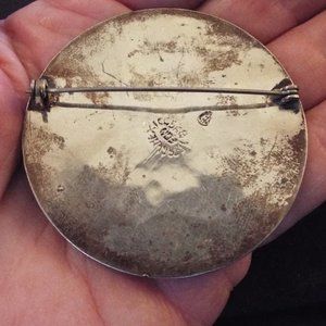 MEXICO TAXCO 925, COPPER & BRASS LAPIS TURQUOISE LARGE MOSAIC ROUND PIN 16