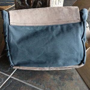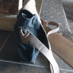 MEYELO Satchel/ Messenger bag Handcrafted by women in Kenya Thick leather and canvas with brass hardware