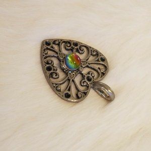 MEdieval Style Heart Pendant Charm Silver Tone Metal Open Work Beaded 5548
