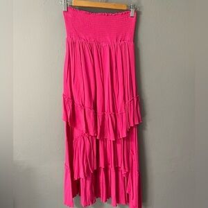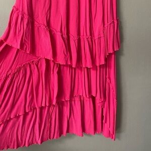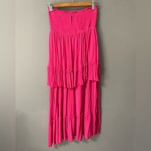 MF Designs high-low smock waist tiered ruffle skirt in pink. Size X-Small