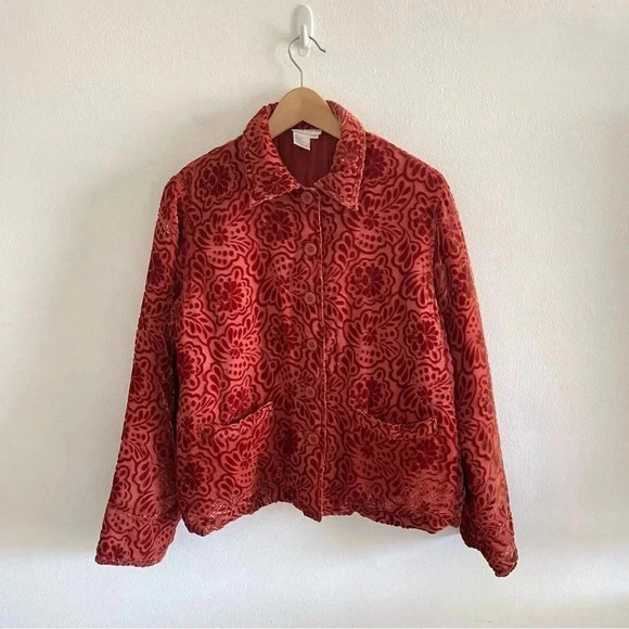 MFA Boston Museum of Fine Arts Coral Burnout Velvet Silk Women’s Jacket
