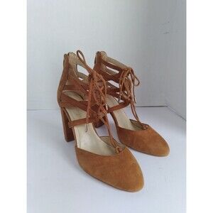 MFisher Lace Up Heels Suede Block Heel Dress Shoes Brown Strappy Size 8