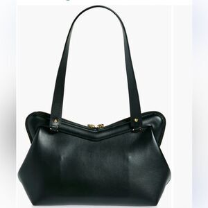 An M-shaped frame tips a nod to the designer's name on this luxe shoulder bag crafted from supple leather.